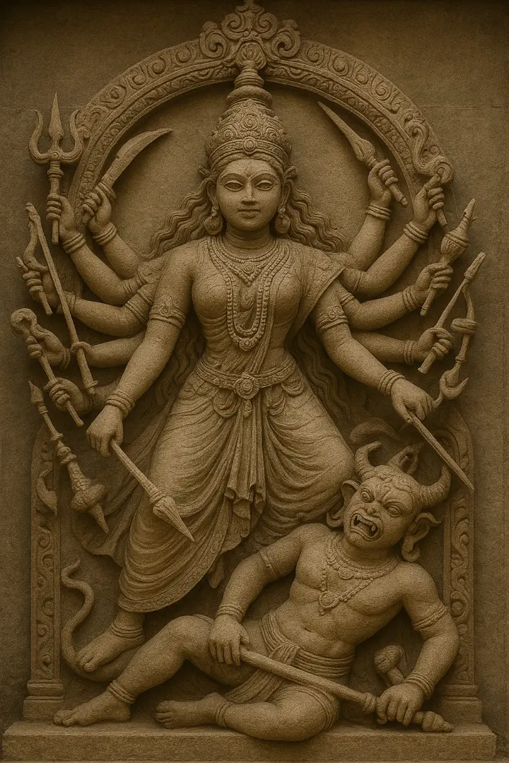 देवी ने महिषासुर मर्दिनी बनकर उसका संहार किया और धर्म एवं न्याय की पुनर्स्थापना की। इन्हें अष्टादशा देवी के नाम से भी जाना जाता है, जिनका उल्लेख देवी माहात्म्य में मिलता है।